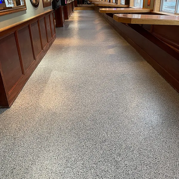 Choose from a range of finishes—solid colors, quartz blends, or flake systems—to match your brand and create an inviting atmosphere for customers and staff.